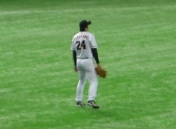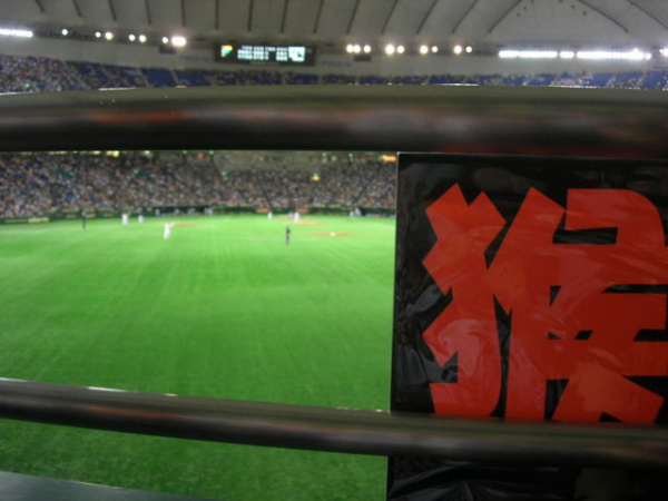 バックスクリーンからピッチャーマウンドを見ても、遠すぎて良く解らず(笑)